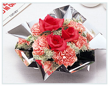 フラワーアレンジメント用のトレー型「パピコ」で、内面をアルミ蒸着した耐水紙を使用しています。