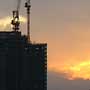 都会の夕暮れ 編み笠のおじさん